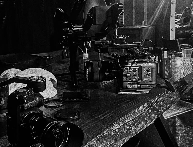 Espaço versátil para gravações de vídeo, com equipamentos e estrutura profissional.